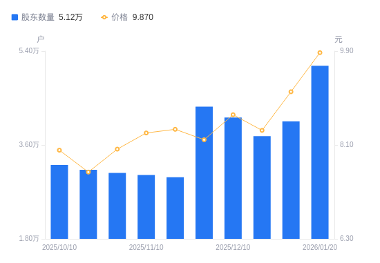1月26日消息,数据显示,截至2026年1月20日,罗平锌电A股股东总户数为5.12万户,较上期(2026年1月9日)增加1.07万户,增幅26.34%。公司最新A股总股本为3.23亿股,其中流通A股3.23亿股,户均持有流通A股数量为6316.72股,较上期减少1664.1股,降幅20.85%;户均持流通A股市值6.23万元,较上期减少1.04万元,降幅14.34%。