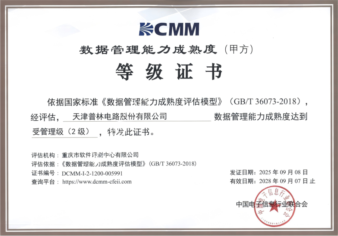 近日,天津普林(002134)顺利通过DCMM(数据管理能力成熟度评估模型)二级认证,标志着我们在数据管理、数据安全与数据应用等多个维度,获得了国家权威标准的认可。这不仅是公司数据治理能力提升的重要体现,更为数字化转型迈出了坚实一步。