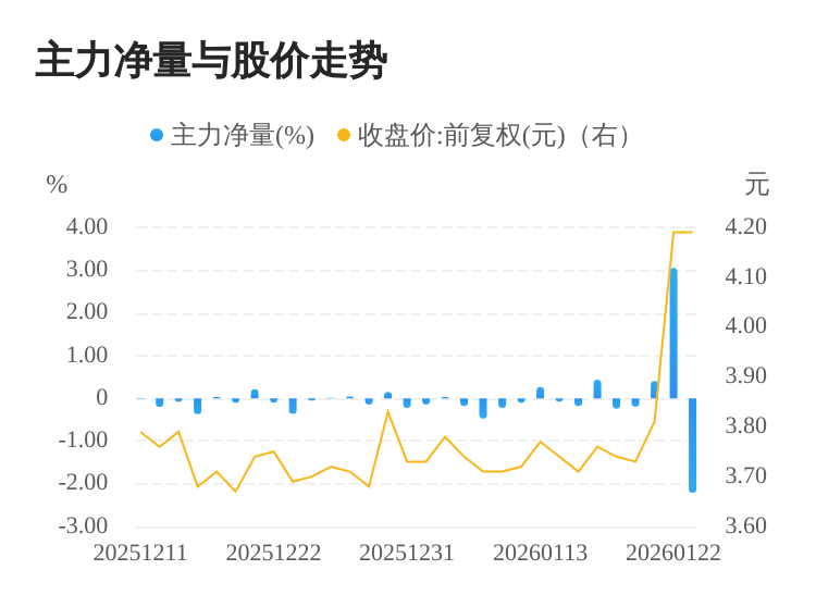 该股今日主力净量为负,且值较大,表明主力大幅流出,主动卖出明显多于主动买入。与此同时,今日换手率较高,主力抛售的嫌疑较大。投顾建议:投资者短期宜合理控制仓位,谨慎为佳。