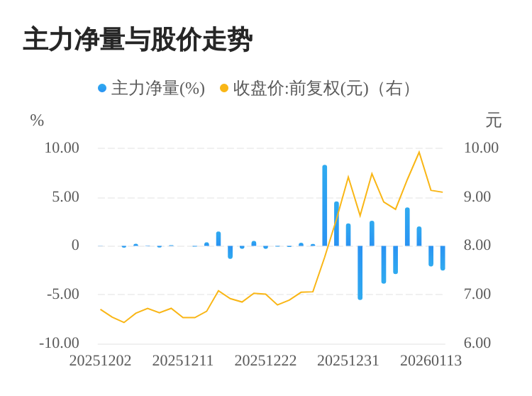 该股今日主力净量为负,且值较大,表明主力大幅流出,主动卖出明显多于主动买入。与此同时,今日换手率较高,主力抛售的嫌疑较大。投顾建议:投资者短期宜合理控制仓位,谨慎为佳。