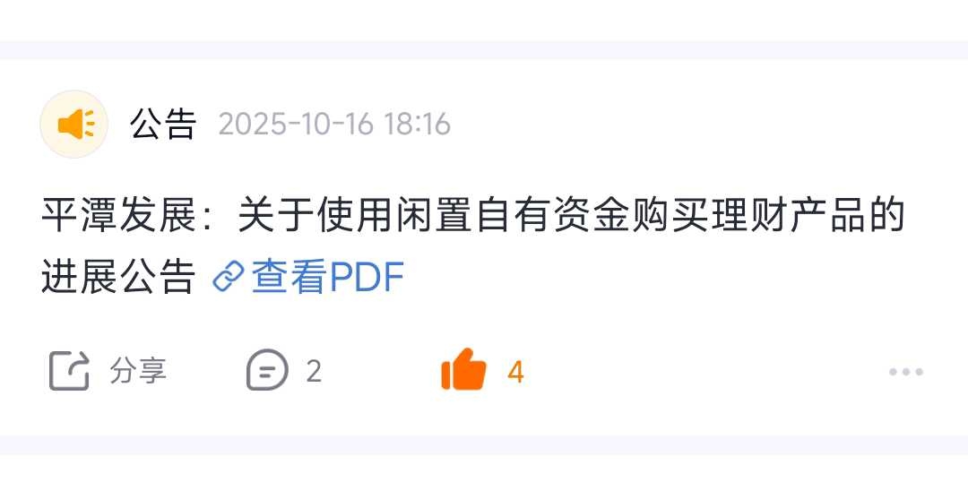 :平潭发展发布这个理财公告的第二天,就涨停了,从此开启一轮轰轰烈烈的大行情。我就是在前一天下车的
