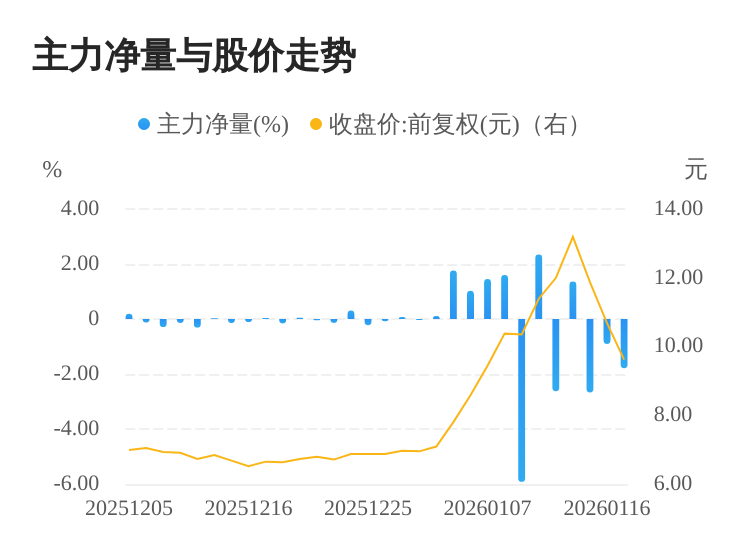 该股今日主力净量为负,且值较大,表明主力大幅流出,主动卖出明显多于主动买入。与此同时,今日换手率较高,主力抛售的嫌疑较大。投顾建议:投资者短期宜合理控制仓位,谨慎为佳。