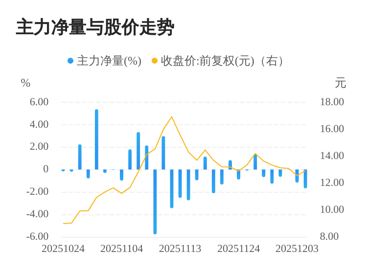 该股今日主力净量为负,且值较大,表明主力大幅流出,主动卖出明显多于主动买入。与此同时,今日换手率较高,主力抛售的嫌疑较大。投顾建议:投资者短期宜合理控制仓位,谨慎为佳。