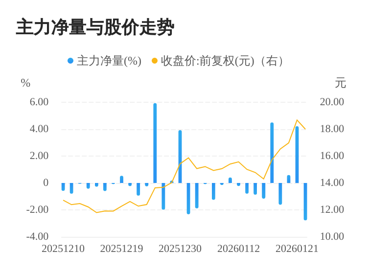 该股今日主力净量为负,且值较大,表明主力大幅流出,主动卖出明显多于主动买入。与此同时,今日换手率较高,主力抛售的嫌疑较大。投顾建议:投资者短期宜合理控制仓位,谨慎为佳。