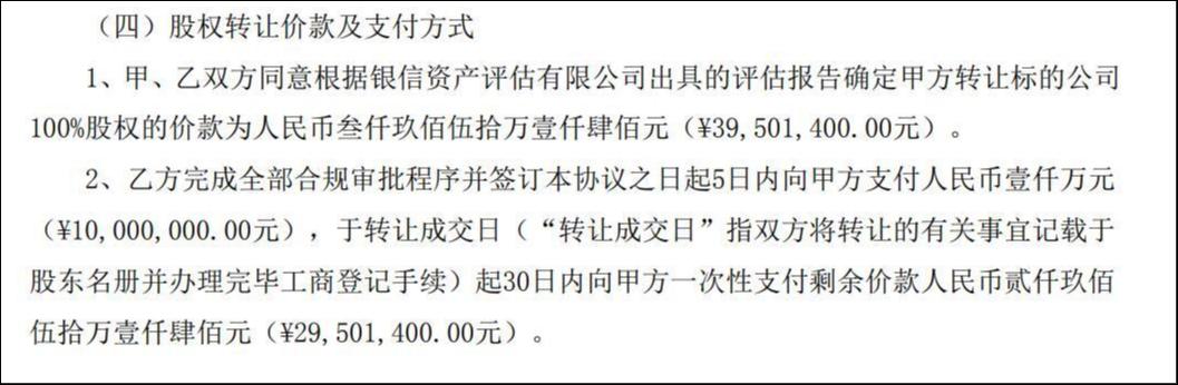 本次交易标的为九鼎集团持有的九鼎新能源100%股权。2024年、2025年九鼎新能源实现营收分别为223.68万元和192.96万元,净利润分别为7.6万元和-33.46万元。据评估机构出具的以2025年12月31日为评估基准日的资产评估报告,九鼎新能源股东全部权益选用资产基础法的评估价值为3950.14万元,增值率为33.56%。