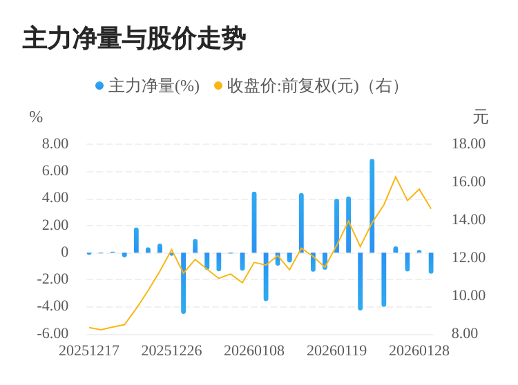 该股今日主力净量为负,且值较大,表明主力大幅流出,主动卖出明显多于主动买入。与此同时,今日换手率较高,主力抛售的嫌疑较大。投顾建议:投资者短期宜合理控制仓位,谨慎为佳。
