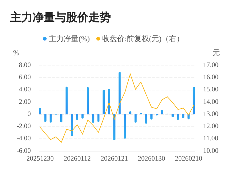 九鼎新材(002201)02月11日主力(dde大单净额)净流入3.82亿元,涨跌幅为6.42%,主力净量(dde大单净额/流通股)为4.45%,两市排名7/5190。