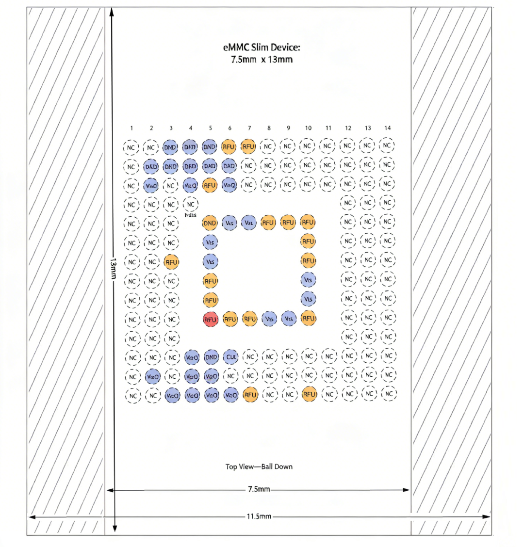 eMMC Slim在封装尺寸上实现了重大突破,把eMMC封装进一步压缩到7.5mm x 13mm,厚度仅0.8mm。相较传统的eMMC(11.5mm x 13mm,厚度1mm),在尺寸和厚度方面均有显著优化: