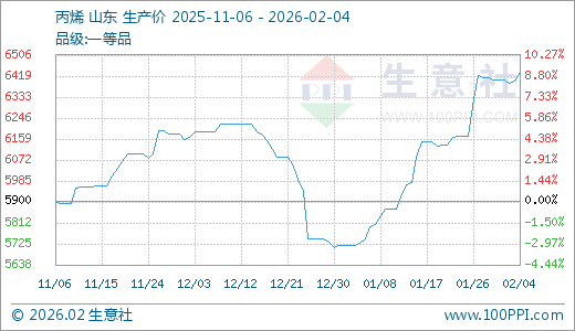 据生意社监测,丙烯02月04日最新价格6434.33元/吨,最近30天上涨12.01%。