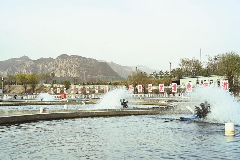 涉县鲟鱼养殖产业发展,同样也有龙头企业在引领。在涉县索堡镇常乐村外的清漳河沿岸,19个圆形养殖池内,增氧机的水轮高速转动,搅动起白色的“浪花”。再往西看,85个方形养殖池连片成方,