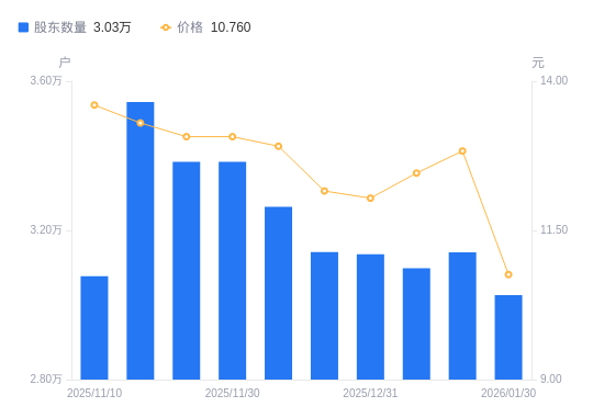 近一年(2025年2月10日至2026年1月30日),奥特迅A股股东户数从2.91万户,增加至3.03万户,增幅4.09%,区间股价上涨1.13%。