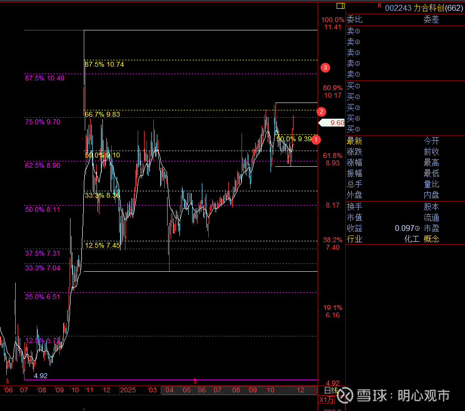 2.价格,百分比位置显示当前支撑5.94-5.74,上方短压先看6.39-6.53,波段预期7.27、7.94;