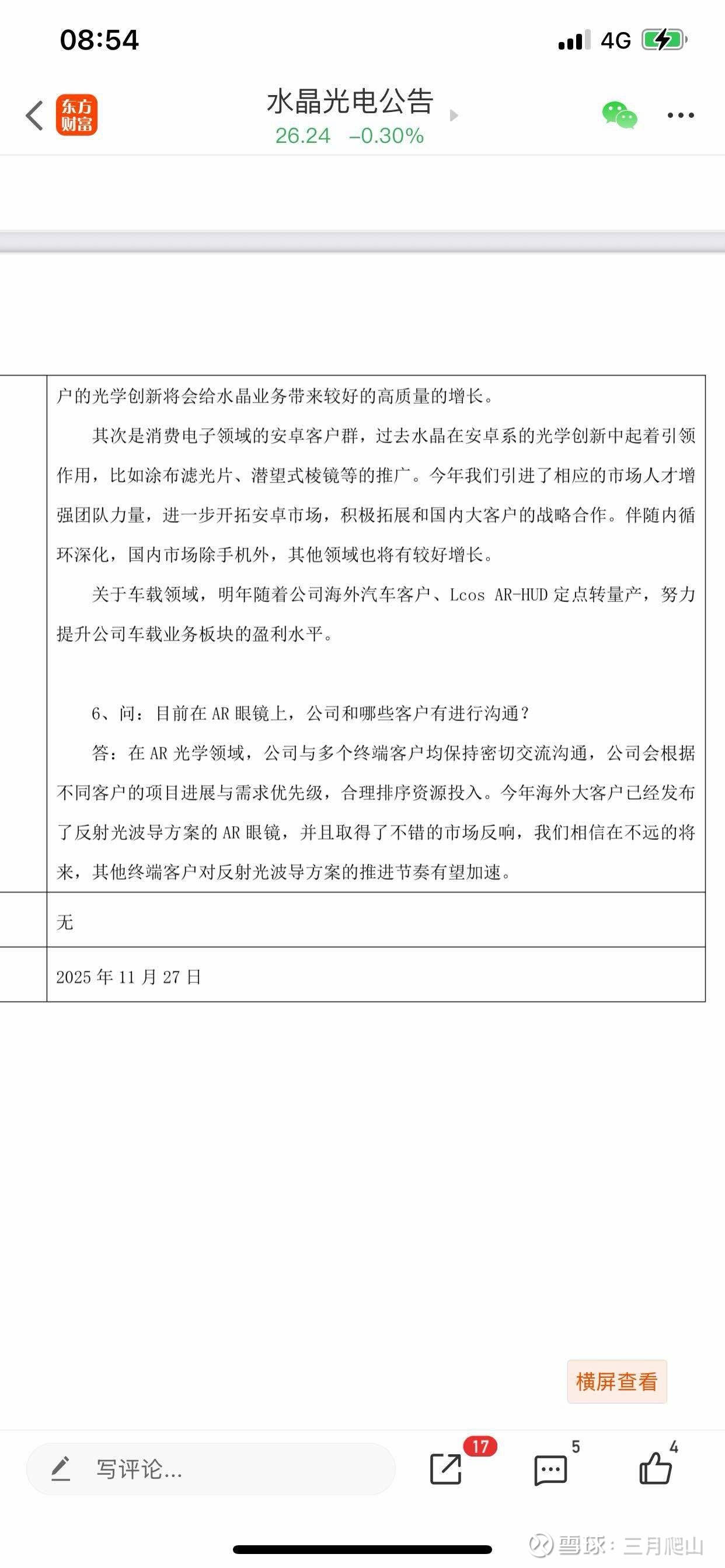 这两条赛道,看似分散,实则在底层技术上高度重合——光学感知与显示。我个人认为:水晶光电的长期价值开始被重新定价。<...