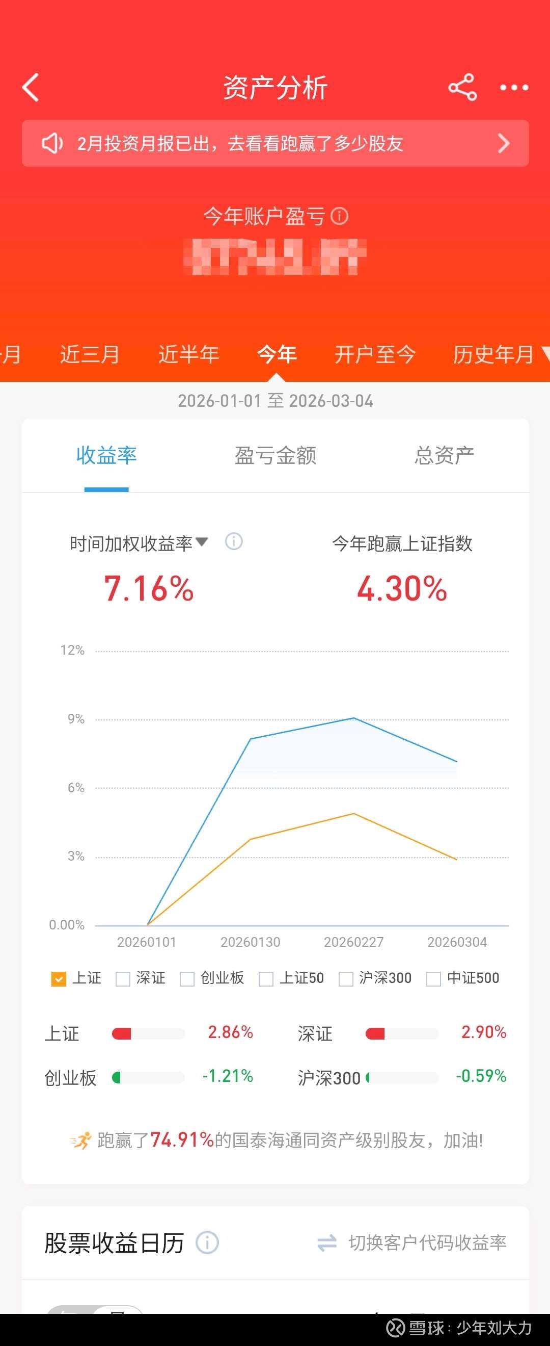 早上看了下,我这券商的收益统计要次日才能看,截止昨天的今年收益率刚好达到两位数,10.00%,精确到小数点后两位,一分不多一分不少。