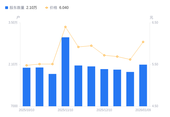 1月21日消息,数据显示,截至2026年1月20日,罗普斯金A股股东总户数为1.98万户,较上期(2026年1月9日)减少1141户,降幅5.45%。公司最新A股总股本为6.75亿股,其中流通A股6.53亿股,户均持有流通A股数量为3.29万股,较上期增加1793.81股,增幅5.76%;户均持流通A股市值19.83万元,较上期增加1.02万元,增幅5.41%。