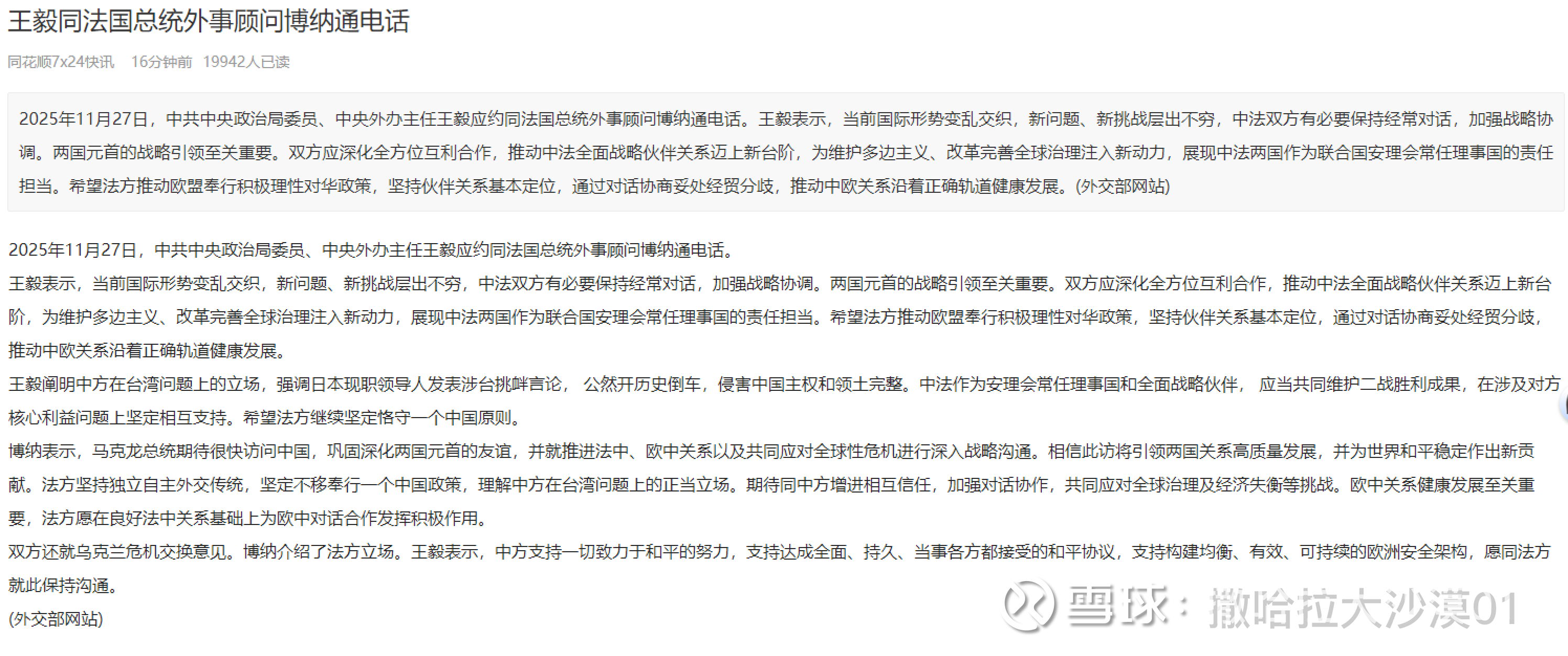 关注本周马克龙访华,中法合作。马克龙定于12月3日至5日对中国展开国事访问。马克龙将先后到访北京与成都两地,此次访问核心聚焦中法全面战略伙伴关系中的关键议题,同时将就多项重大国际问题及合作领域深入磋商,共同应对当今时代的全球挑战。声明特别强调,马克龙将全力推动“经济贸易领域合作与...