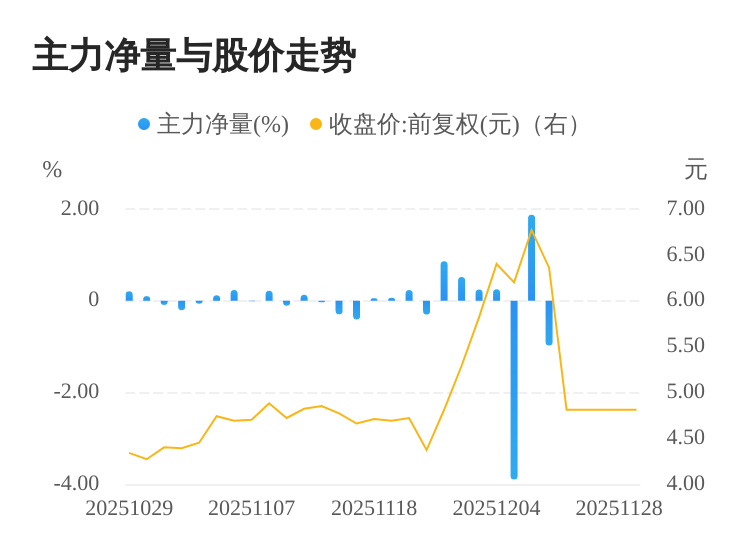 该股今日主力净量为负,且值较大,表明主力大幅流出,主动卖出明显多于主动买入。与此同时,今日换手率较高,主力抛售的嫌疑较大。投顾建议:投资者短期宜合理控制仓位,谨慎为佳。