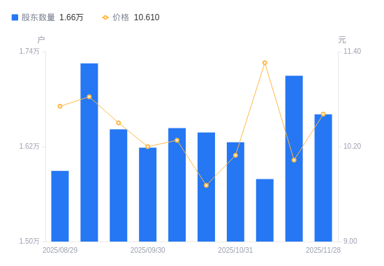 近一年(2024年11月29日至2025年11月28日),富临运业A股股东户数从1.93万户,减低至1.66万户,降幅13.93%,区间股价上涨52.22%。