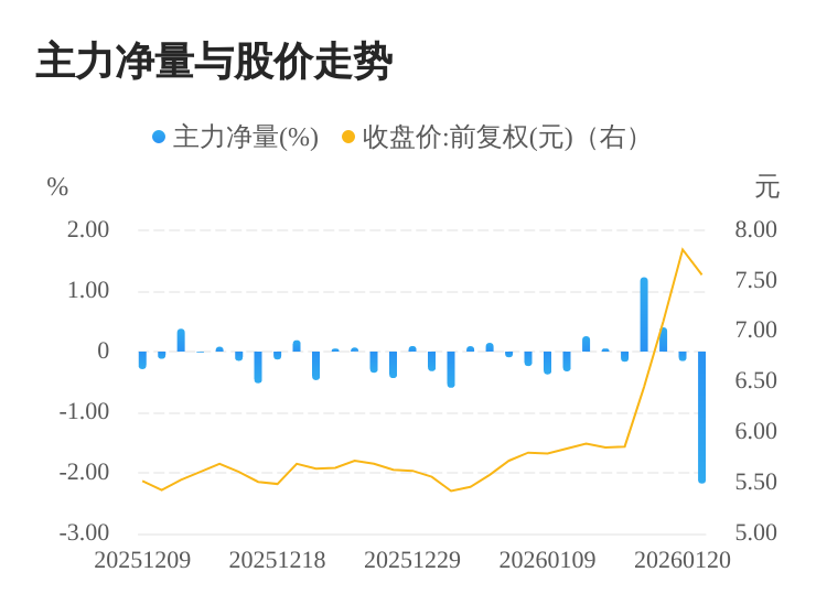 该股今日主力净量为负,且值较大,表明主力大幅流出,主动卖出明显多于主动买入。与此同时,今日换手率较高,主力抛售的嫌疑较大。投顾建议:投资者短期宜合理控制仓位,谨慎为佳。