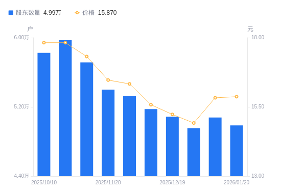近一年(2025年1月20日至2026年1月20日),永安药业A股股东户数从2.3万户,增加至4.99万户,增幅116.43%,区间股价上涨100.84%。