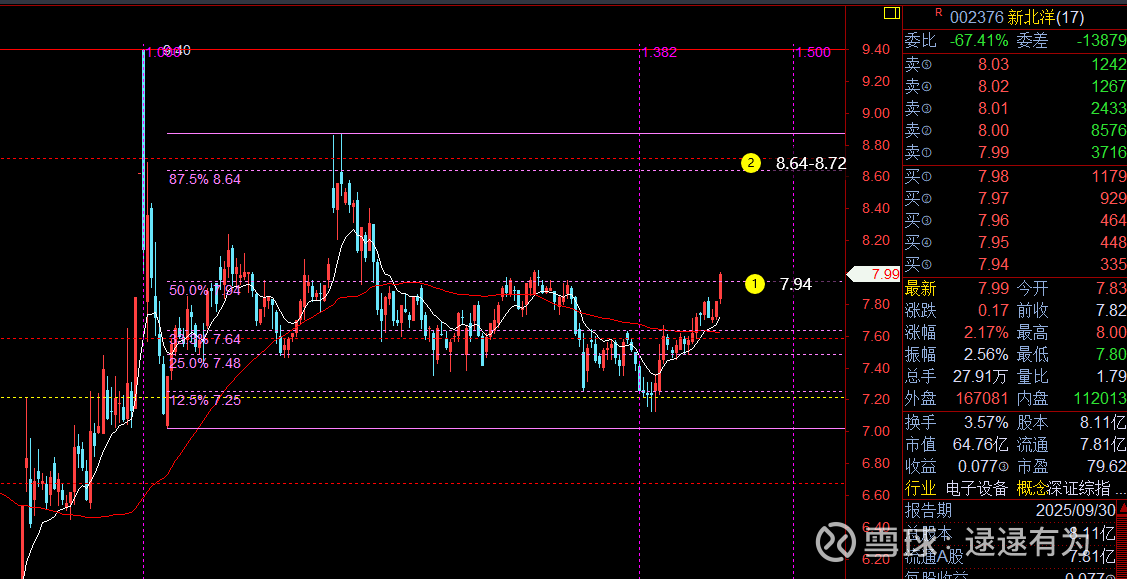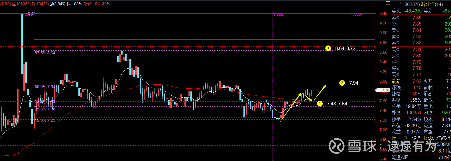 :7.64完成突破,依托7.48-7.64支撑区上行,短压7.94附近,中期阻力8.64-8.72区间。$...