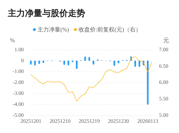 该股今日主力净量为负,且值较大,表明主力大幅流出,主动卖出明显多于主动买入。与此同时,今日换手率较高,主力抛售的嫌疑较大。投顾建议:投资者短期宜合理控制仓位,谨慎为佳。