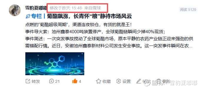 事件导火索:池州鑫泰4000吨装置停产,全球菊酯链瞬间少掉40%现货;