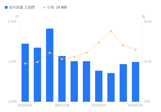 近一年(2025年2月28日至2026年1月30日),联发股份A股股东户数从2.23万户,减低至2.1万户,降幅5.87%,区间股价上涨86.77%。