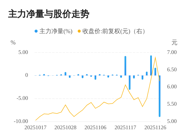 该股今日主力净量为负,且值较大,表明主力大幅流出,主动卖出明显多于主动买入。与此同时,今日换手率较高,主力抛售的嫌疑较大。投顾建议:投资者短期宜合理控制仓位,谨慎为佳。