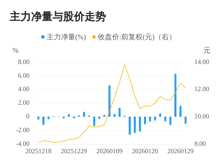 该股今日主力净量为负,且值较大,表明主力大幅流出,主动卖出明显多于主动买入。与此同时,今日换手率较高,主力抛售的嫌疑较大。投顾建议:投资者短期宜合理控制仓位,谨慎为佳。