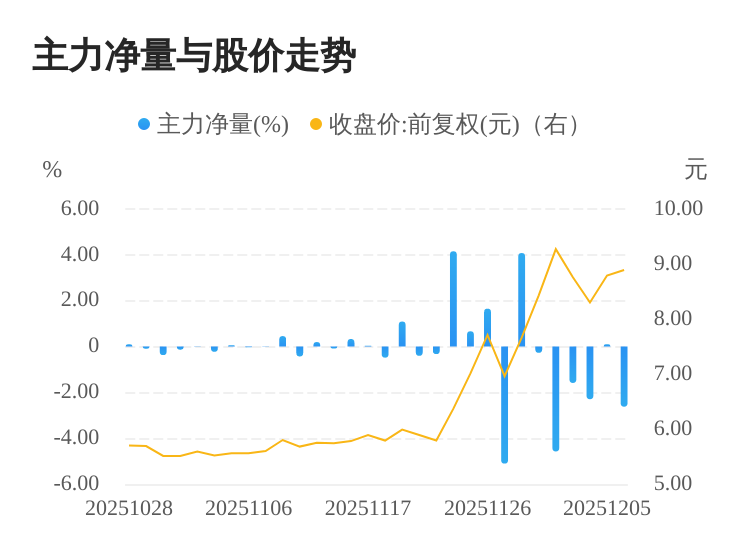 该股今日主力净量为负,且值较大,表明主力大幅流出,主动卖出明显多于主动买入。与此同时,今日换手率较高,主力抛售的嫌疑较大。投顾建议:投资者短期宜合理控制仓位,谨慎为佳。