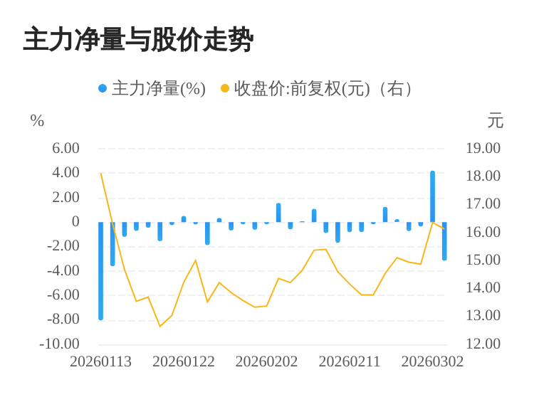 该股今日主力净量为负,且值较大,表明主力大幅流出,主动卖出明显多于主动买入。与此同时,今日换手率较高,主力抛售的嫌疑较大。投顾建议:投资者短期宜合理控制仓位,谨慎为佳。