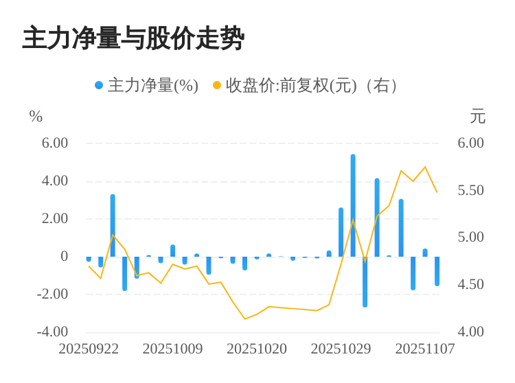 该股今日主力净量为负,且值较大,表明主力大幅流出,主动卖出明显多于主动买入。与此同时,今日换手率较高,主力抛售的嫌疑较大。投顾建议:投资者短期宜合理控制仓位,谨慎为佳。