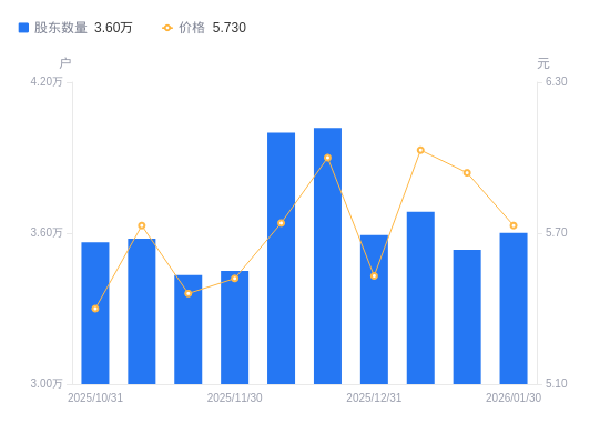 近一年(2025年2月10日至2026年1月30日),天虹股份A股股东户数从4.15万户,减低至3.6万户,降幅13.17%,区间股价上涨17.42%。