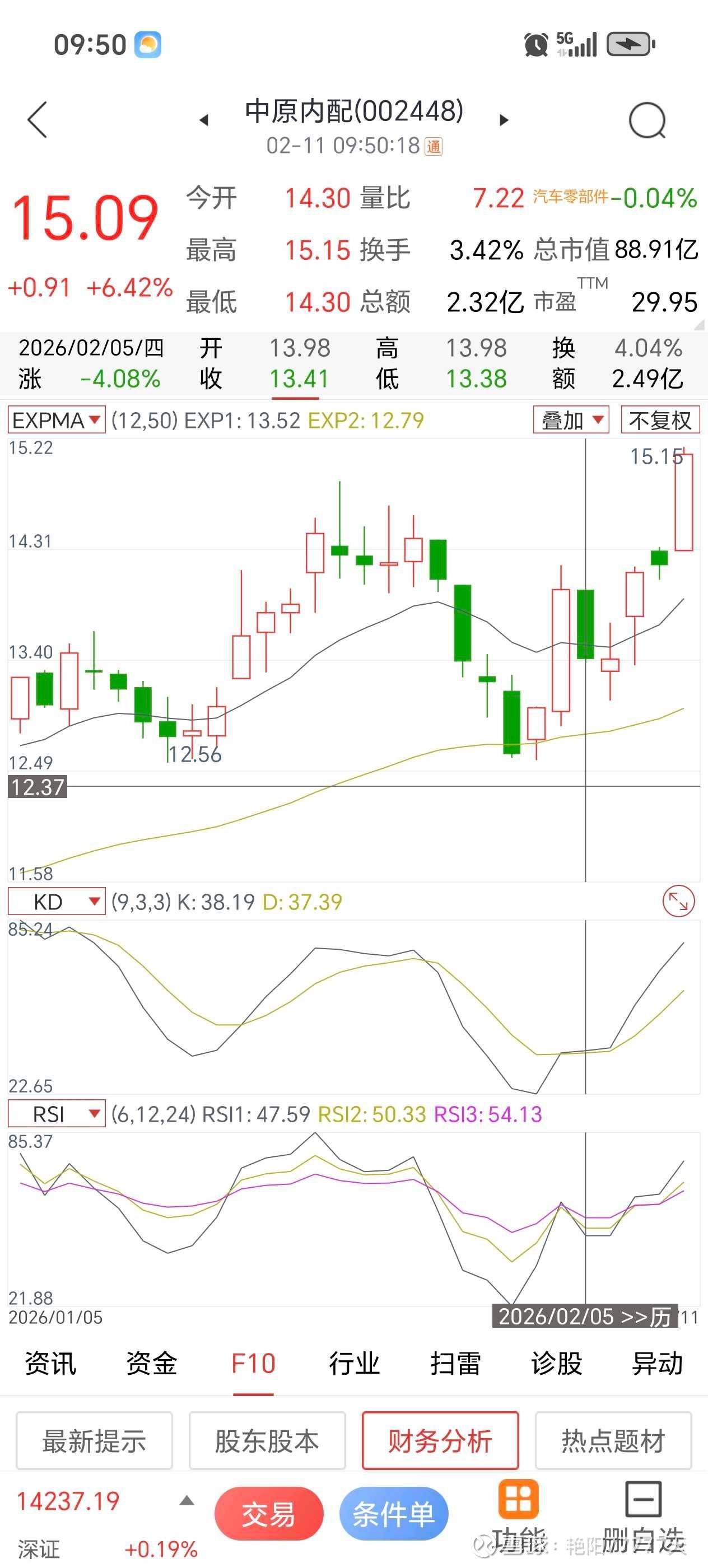 2月5日大跌的时候分析的,中原内配几天又创新高了