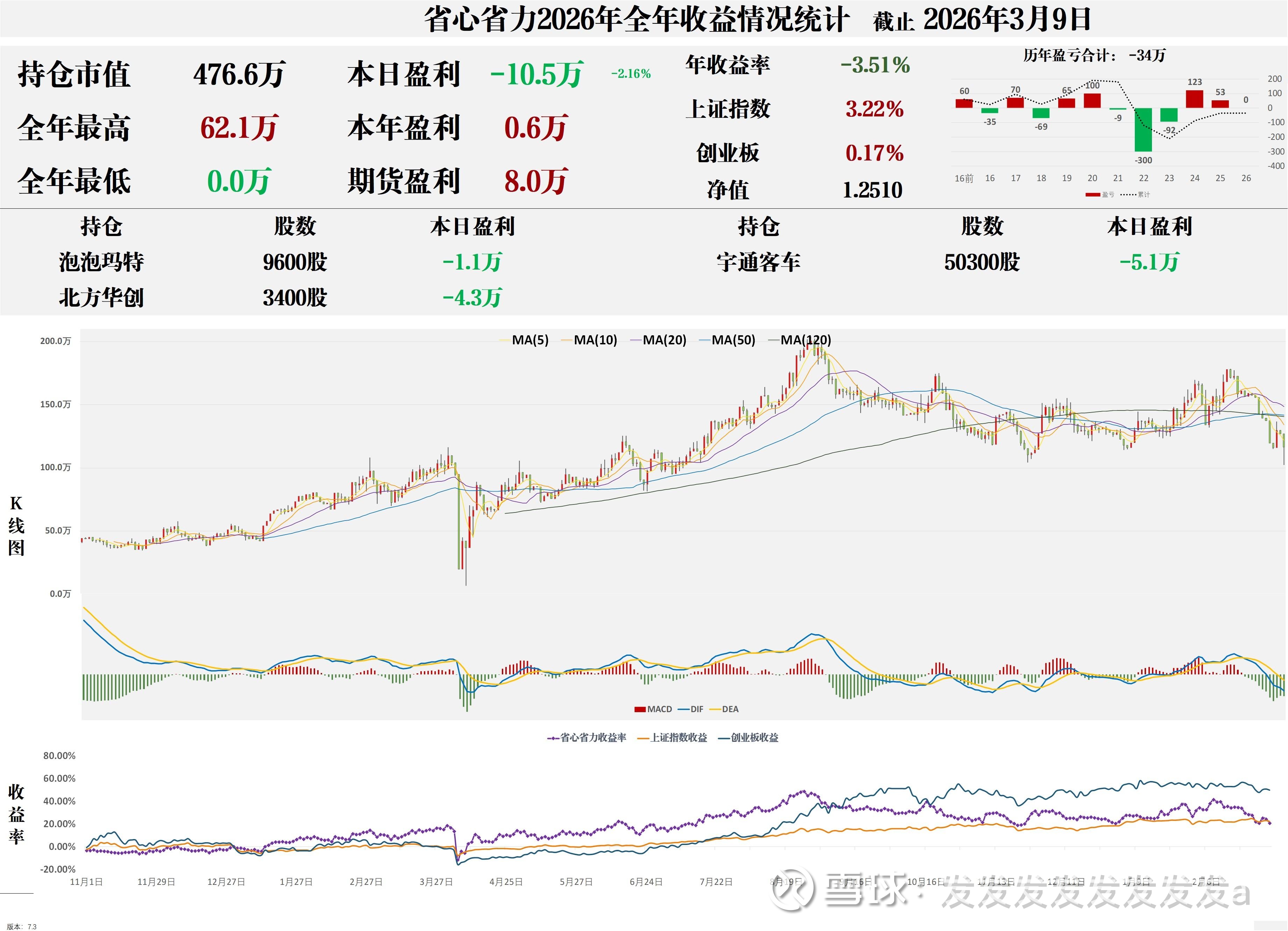 回复@发发发发发发发发a: 发会计,你这个年盈利-3.51%保真吗?是的话我先开一瓶珠江啤酒了?//@发发发发发发发发a:回复@省心省力:本日盈利-10.5万,本年盈利+0.6万,历年盈利-34万左右,另期货盈利11万?