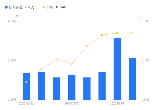 近一年(2025年3月31日至2026年1月20日),嘉事堂A股股东户数从2.36万户,增加至2.9万户,增幅22.78%,区间股价上涨27.29%。