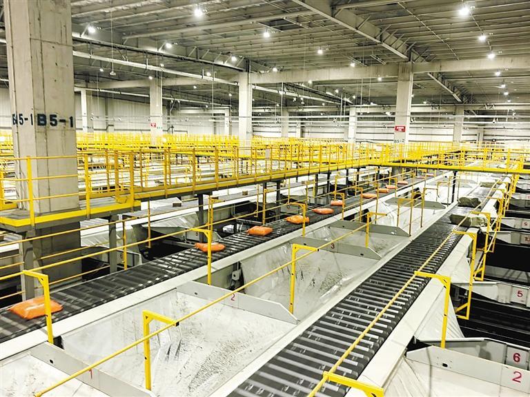 在申通快递华北转运中心,包裹经过“五面扫”DWS采集系统识别后,自动滑入对应地址的格口。 本报记者 张春娥 本报通讯员 万倩 摄本报讯(记者 张春娥 通讯员 万倩 张琛)每天傍晚六点,位于京南·固安高新区大清河园的申通快递华北转运中心迎来一天中最忙碌的时刻。满载包裹的货车有序驶入卸货区,工作人员借助卸货辅助设备,迅速将快件移入传送带。分拣场内,自动化交叉带分拣系统高速运转,万千包裹经过“五面扫”DWS采集系统精准称重、扫描与识别后,自动滑入对应地址的格口,等待发往各地。这套智能系统使单件快递从分拣到装车仅需10分钟。