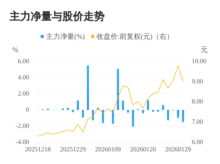 该股今日主力净量为负,且值较大,表明主力大幅流出,主动卖出明显多于主动买入。与此同时,今日换手率较高,主力抛售的嫌疑较大。投顾建议:投资者短期宜合理控制仓位,谨慎为佳。