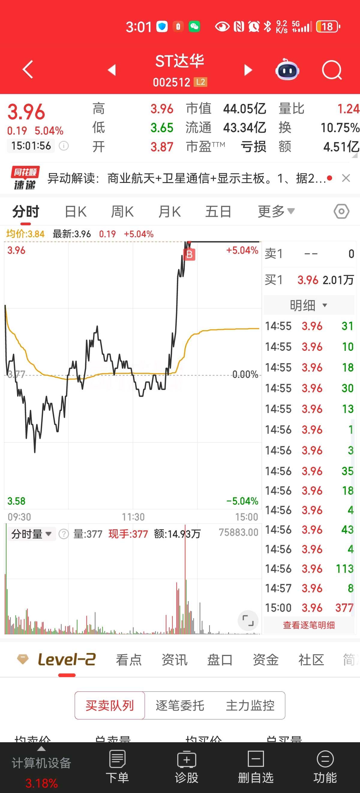 屏幕上的数字终于翻红,像黑暗中突然擦亮的一根火柴。我盯着“ST达华”后面那个鲜红的“+4.87%”,愣了三秒才反应过来——它真的涨了。