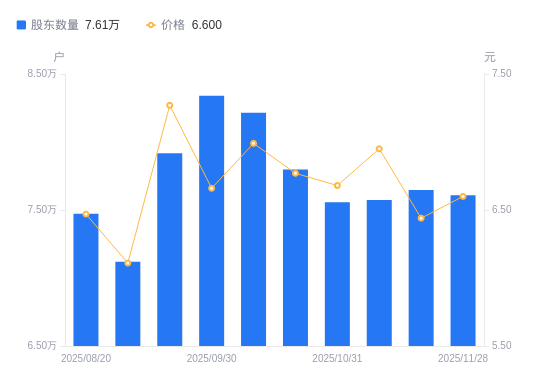 12月3日消息,数据显示,截至2025年11月20日,宝馨科技A股股东总户数为7.65万户,较上期(2025年11月10日)增加738户,增幅0.97%。公司最新A股总股本为7.2亿股,其中流通A股5.54亿股,户均持有流通A股数量为7245.21股,较上期减少70.6股,降幅0.97%;户均持流通A股市值4.67万元,较上期减少4185.76元,降幅8.23%。