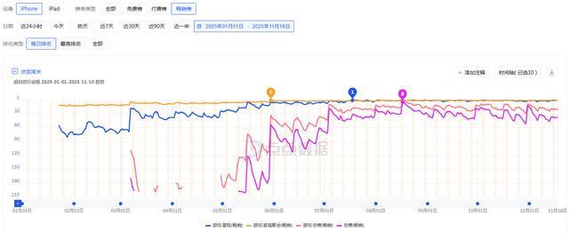 点点数据监测显示,《超自然行动组》上线以来“低开高走”。该游戏2025年7月同时在线人数突破100 万,8月中国内地iOS游戏畅销榜排名最高达到第4。