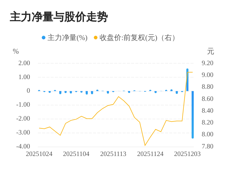 该股今日主力净量为负,且值较大,表明主力大幅流出,主动卖出明显多于主动买入。与此同时,今日换手率较高,主力抛售的嫌疑较大。投顾建议:投资者短期宜合理控制仓位,谨慎为佳。
