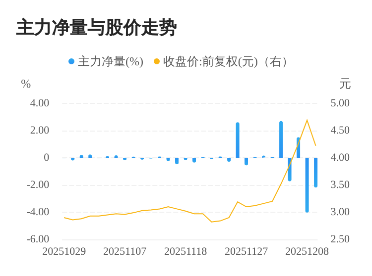 该股今日主力净量为负,且值较大,表明主力大幅流出,主动卖出明显多于主动买入。与此同时,今日换手率较高,主力抛售的嫌疑较大。投顾建议:投资者短期宜合理控制仓位,谨慎为佳。