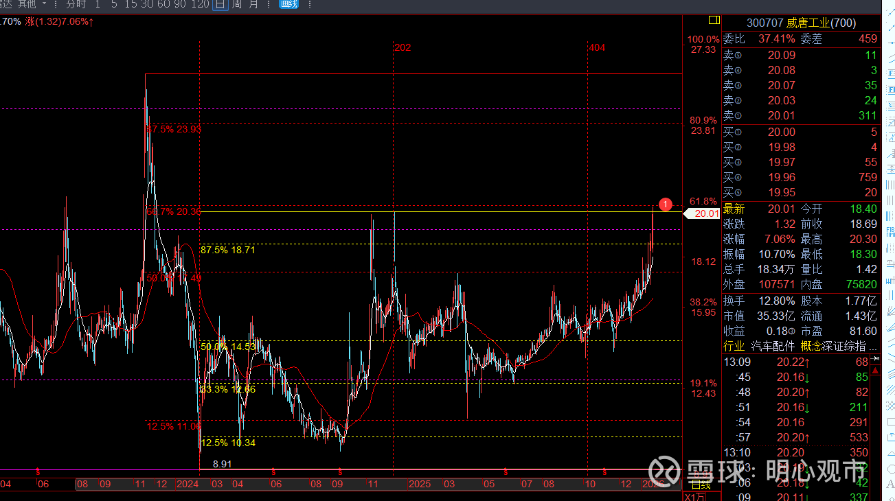 2.价格,百分比显示15.63是近循环的半分位,能突破站稳代表波段内趋势的进一步转多,当前支撑15.6-15.3,上方短压先看17.5,小波段预期18.7-19.3,大波段空间23.96-24.6...