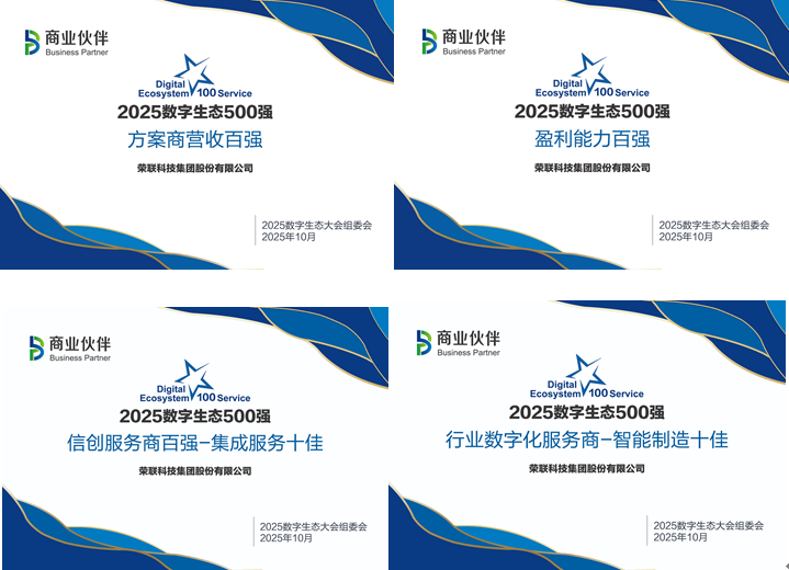 近日,由BP商业伙伴主办的2025数字生态大会在北京举办,荣联科技(002642)集团出席本次会议,并荣获“2025数字生态方案商营收百强”、“2025数字生态盈利能力百强”、“信创服务商—集成服务十佳”和“行业数字化服务商—智能制造十佳”多项大奖。