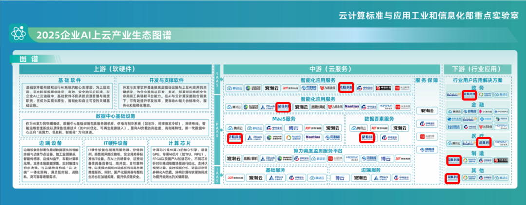 近日,中国电子技术标准化研究院主办的“2025云产业和标准应用大会”在京顺利召开。会上隆重发布了《2025企业AI上云产业生态图谱》,荣联科技(002642)集团凭借技术实力和行业积累,入选《图谱》的AI云服务和行业应用解决版块中多个领域。