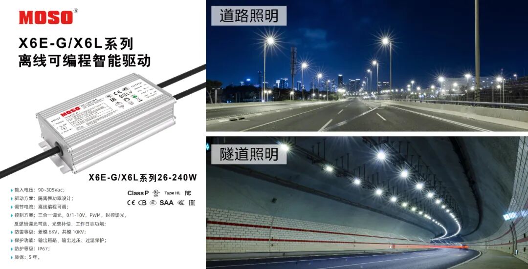 · X6E-G/X6L系列:采用先进拓扑技术,以超高转换效率和高防雷等级为每一盏灯提供稳定动力和卓越的高可靠性能,广泛获得市场认可。