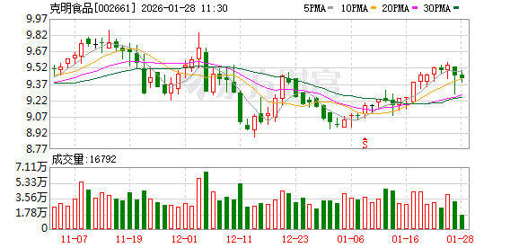 业绩上,2025年第三季度,克明食品营业总收入31.95亿元,同比下降8.07%;归母净利润1.24亿元,同比下降20.17%;扣非净利润1.13亿元,同比下降22.55%;经营活动产生的现金流量净额为5.14亿元,同比下降17.72%;报告期内,克明食品基本每股收益为0.403元,加权平均净资产收益率为4.75%。