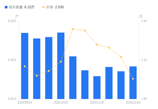 近一年(2024年12月31日至2025年12月19日),普邦股份A股股东户数从7.53万户,减低至6.15万户,降幅18.29%,区间股价上涨0.00%。